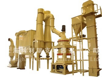HGM重晶石磨粉机全套配置包括锤式破碎机、斗式提升机、储料仓、震动给料机、微粉磨主机、变频分级机、双联旋风集粉器、脉冲除尘系统、高压风机、空气压缩机、电器控制系统。